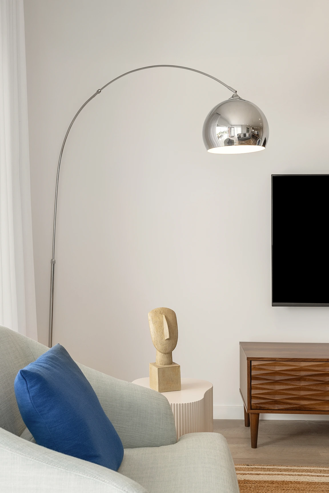 O mobiliário escolhido prioriza linhas simples, o conforto e texturas agradáveis ao toque. Neste projeto valorizámos a integração entre interior e exterior.
